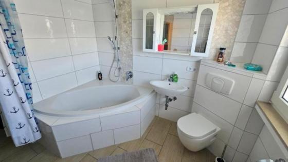 In dem Haus ist eine Einbauküche vorhanden. Das Bad des Hauses verfügt über eine Acrylbadewanne und eine Dusche. Selbstverständlich handelt es sich um ein Tageslichtbad. Die Dusche verfügt über eine Duschkabine, nicht nur über einen Vorhand.
