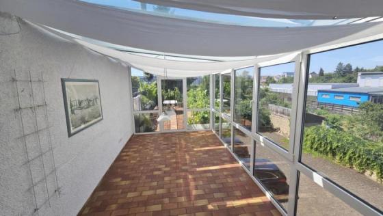 OG: 2 Zimmer (sind der Wohnung im EG: zugeordnet). - Wohnzimmer, Küche, Duschbad, Wintergarten, Dachterrasse.