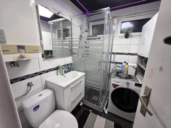 Das Bad der Wohnung verfügt über und eine Dusche.