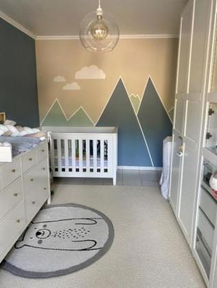 Flur, Kinderzimmer, Schlafzimmer, Abstellkammer (kann zu Gäste-WC wieder umgebaut werden), Duschbad, großes Wohnzimmer mit Essbereich, Küche. Der Wohnung ist ein Kellerraum zugeordnet.