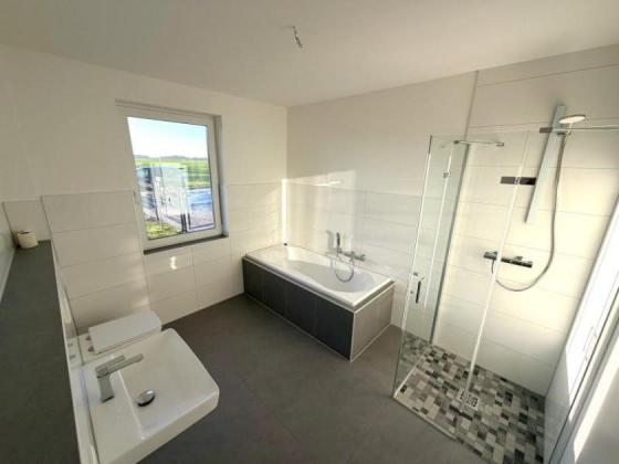 Das Bad des Hauses verfügt über eine Badewanne und eine Dusche. Selbstverständlich handelt es sich um ein Tageslichtbad. Die Dusche verfügt über eine Duschkabine, nicht nur über einen Vorhand.