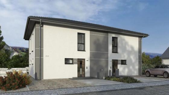 Einzige Vorschrift: Die beiden Doppelhaushälften müssen an einer Wand zusammengebaut sein, einen gleich großen Anteil am Dach oder ein durchgängiges Dach aufweisen und den Zugang über zwei separate Eingänge ermöglichen.