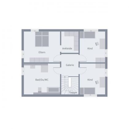 Im Mittelpunkt des Hauses steht der großzügige Wohn- und Essbereich - lichtdurchflutet, kommunikativ und vielseitig nutzbar. Hier entsteht Raum für gemeinsames Kochen, Spielen, Entspannen und Ankommen. Ein zusätzliches Zimmer im Erdgeschoss eignet sich flexibel als Gästezimmer oder Homeoffice. Hauswirtschaftsraum und Gäste-WC ergänzen das Erdgeschoss funktional und alltagstauglich.