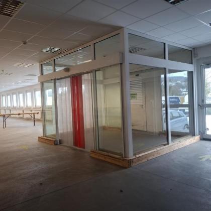 In der Halle sind elektrische Fenster zur Be- und Entlüftung in Arbeit.