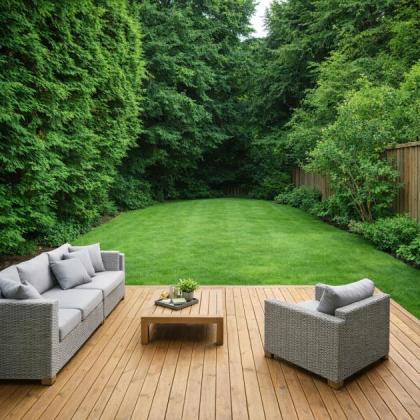 Der pflegeleichte Garten ermöglicht Ihnen erholsame Stunden im Freien zu genießen.
