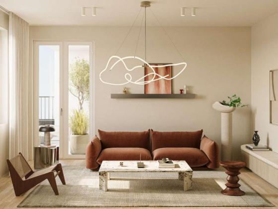 Hochwertige, klassische Materialien in warmen Farbtönen verkörpern zeitlosen Anspruch und nachhaltige Beständigkeit. In den Wohnbereichen sorgt edles Eichenparkett für eine ausgewogene und harmonische Atmosphäre.