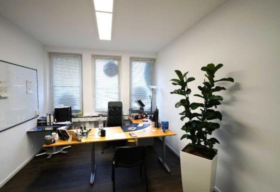 Zum Angebot gehört zudem eine Bürofläche mit 64 m² und drei hellen Büroräumen für insgesamt vier bis sechs Mitarbeiter sowie eine Sanitär-Anlage. Beheizt wird das Büro über Fernwärme.