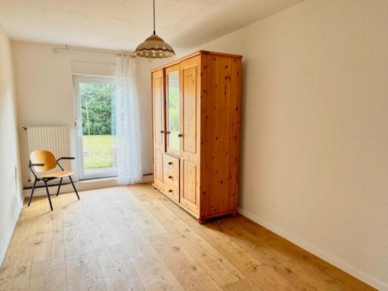 Hier erwarten Sie zwei weitere Schlafzimmer, die sich flexibel als Kinder-, Gäste- oder Arbeitszimmer nutzen lassen. Ein Durchgangszimmer beherbergt die neue Heizungsanlage (Bj. 2021). Zusätzlich gibt es ein zweites Badezimmer mit Dusche und WC, sowie Anschlüsse für eine Waschmaschine. Besonders hervorzuheben ist der großzügige Balkon, der vom Schlafzimmer aus betreten werden kann und einen Blick über das Grundstück bietet.