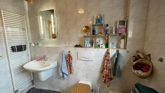 Das Erdgeschoss teilt sich auf in Wohnzimmer, Küche, Flur und Gäste WC. Im Obergeschoss befinden sich drei Schlafräume, das Badezimmer sowie der Flur. Das Dachgeschoss ist ausgebaut und könnte z. B. als Büro oder Gästezimmer genutzt werden.
