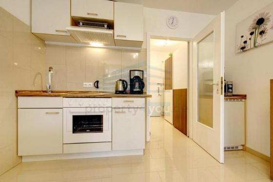 Küche: sehr gute und neuwertige Küchenzeile vorhanden, ausgestattet mit großem Kühlschrank mit Gefrierkombination, Mikrowellengrill, Cerankochfeld, Dunstabzug, Backofen, Wasserkocher, Toaster, Kaffeemaschine, Koch und Essgeschirr.