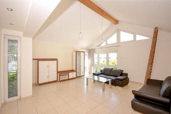 Im Erdgeschoss erwartet Sie eine separate Küche, ein Gäste-WC sowie ein großzügiges Wohn- und Esszimmer. Zwei Stufen zwischen dem Essbereich und dem Wohnzimmer schaffen eine angenehme optische Trennung und verleihen dem Raum Struktur und Tiefe. Das Dachgeschoss beherbergt eine offene Galerie, ein großes Schlafzimmer sowie ein modernes Badezimmer. Die Galerie eignet sich hervorragend als Home-Office, kann jedoch bei Bedarf durch eine Wand vom Treppenhaus abgetrennt und in ein zusätzliches Zimmer umgewandelt werden.