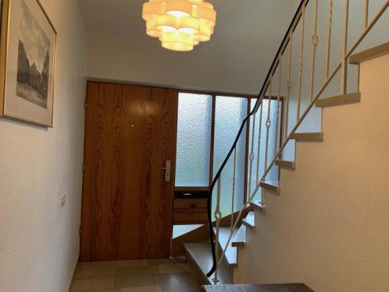 vom Flur im Erdgeschoss erreicht man über eine massive Treppe die Wohnung im Obergeschoss.