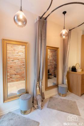 Auch das Badezimmer wurde mit hochwertigen Materialien und großformatigen Fliesen ausgestattet. Ein Wasseranschluss im hinteren Raum bietet die Möglichkeit hier eine kleine Teeküche einzubauen. Eine Teilübernahme des Inventars des Laden gegen eine geringe Abstandszahlung könnte vereinbart werden.