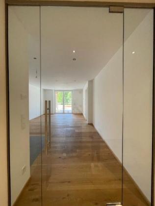 * Weiße Türen & elegante Glastür zwischen Eingangs- und Wohnbereich