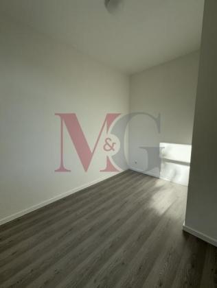 Die gesamte Wohnung ist mit grauem Laminat ausgestatt und frisch gestrichen.