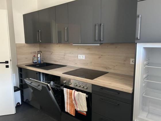 Küche und Bad sind mit hochwertigen farbigen Fliesen gefliest und mit Fenster ausgestattet.