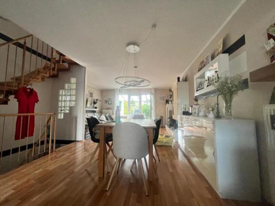 Das Obergeschoss beherbergt zwei Kinderzimmer sowie ein stilvolles Badezimmer mit Wanne und Dusche. Ein weiteres Highlight ist das Studio im Dachgeschoss, das als großzügiges Elternschlafzimmer oder als vielseitig nutzbarer Wohnraum dienen kann.