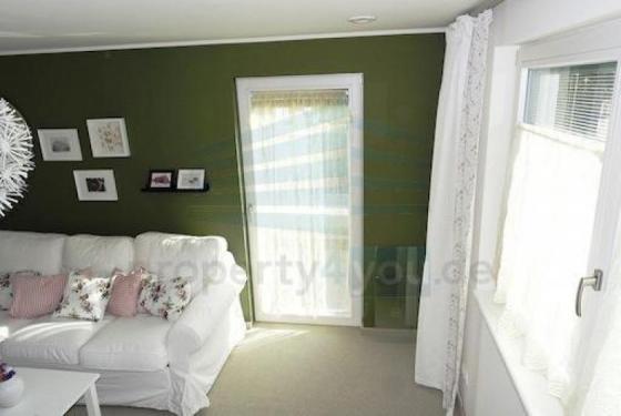 Es sind folgende Räumlichkeiten vorhanden: Wohnzimmer, Schlafzimmer, Küche, Speisekammer und Bad. Im Schlafzimmer finden Sie ein Doppelbett 1,80m x 2,00m und einen Schrank, inklusive Bettwäsche. Es gibt ein zusätzliches Bettsofa. Weiterhin sind vorhanden, ein Esstisch mit 4 Stühlen, ein Schreibtisch, eine Schrankwand und Regale. Das Bad hat eine Badewanne und eine Dusche. Der Bodenbelag im Wohn- und Schlafbereich ist Teppich. Die Küche und das Badezimmer sind gefliest. Die Möblierung ist neuwertig, sehr gut und hat eine moderne Linie. Die Küche ist gut ausgestattet. Sie hat eine sehr gute Einbauküche, Fenster, Geschirr, Spülmaschine, Gefrierkombination, Mikrowelle, Kochfeld und einen elektrischer Backofen. Besonders ist bei der sehr hellen und ruhigen Wohnung die Terrasse mit Blick ins Grüne. Eine Waschmaschine und Trockner sind im Haus vorhanden, sowie ein SAT-TV, Samsung Smart Hub LED TV und ein DVD Blue Ray-Player.