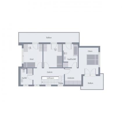 Kleinere und größere rechteckige Elemente fügen sich bei unserem Black Label 17 zu einem harmonischen Ganzen zusammen, das mit einer außergewöhnlichen Fassade, mit Vorsprüngen und Rückversätzen und vor allem mit zahlreichen wohnlichen Mehrwerten überzeugt. So punktet das Einfamilienhaus auf der Rückseite im Obergeschoss mit einem großen Balkon, während darunter ein überdachter Terrassenbereich entsteht, der sich perfekt an den Erker schmiegt, der im Inneren dem Essbereich einen ganz besonderen Schnitt verleiht. Apropos Inneres: Das bietet den künftigen Eigenheimbesitzern eine Wohnfläche von mehr als 200 m², verteilt auf zwei Ebenen. Im Erdgeschoss befinden sich neben dem geräumigen Wohn-Ess-Koch-Bereich, der durch eine zentral gelegene Speisekammer von Flur und Dielenbereich abgetrennt wird, ein Hauswirtschaftsraum sowie ein Gäste-WC. Vom großen Flur führt der Weg ins Obergeschoss. Hier befinden sich zwei Kinderzimmer, die jeweils über einen Zugang zu einem eigenen Balkon und einem separaten Bad verfügen, das große Elternschlafzimmer mit Ankleide, Badezimmer und einem weiteren Balkon. Verbindendes Element in der ersten Etage ist die Galerie, in der ausreichend Platz für eine kleine Bibliothek oder eine Relax-Ecke ist.