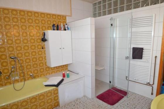 Es gibt genügend Platz für eine große Familie - Ihre Kinder werden den großen Garten lieben :-). Vom Garten aus gelangen Sie über ein paar Stufen zur teilweise überdachten Terrasse. Der komplett ausgebaute Keller könnte auch als Einliegerwohnung genutzt werden (separater Zugang durch die Garage).