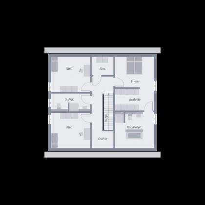 Im Obergeschoss gelangen Sie von der zentral gelegenen, geräumigen Galerie in den großzügig bemessenen Elternbereich mit Schlafzimmer, direkt angrenzendem begehbarem Kleiderschrank und einem Badezimmer.