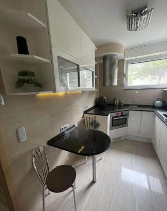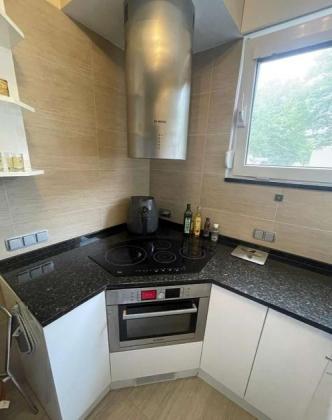 Das Wohnzimmer verfügt über eine gemütliche Sofaecke, Esstisch, TV und Zugang zum großen Westbalkon mit schönem Blick ins Grüne. Die moderne Einbauküche ist vollständig ausgestattet – inklusive Kühlschrank, Herd, Backofen, Mikrowelle, Geschirr und Küchenutensilien. Im Schlafzimmer befinden sich ein komfortables Doppelbett und ein Kleiderschrank. Das Tageslichtbad ist geschmackvoll gefliest, mit Badewanne und Waschmaschine ausgestattet. Der Wohn- und Schlafbereich ist mit neuem Laminatboden versehen, Decken in Flur und Küche sind abgehängt und mit Deckenspots beleuchtet. Dreifach verglaste Wärmedämmfenster und eine neue Balkontür sorgen für gute Energieeffizienz. Eine Einzelgarage sowie ein Kellerraum gehören zur Wohnung. Die gepflegte Wohnanlage bietet rund 75 Stellplätze, eine grüne Gartenanlage und einen neu angelegten Spielplatz. Beheizt wird über eine moderne Fernwärmezentralheizung.