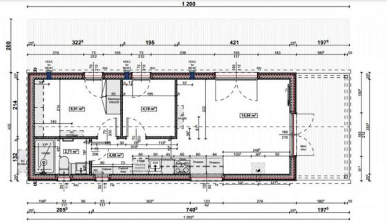 Dieses Tiny House umfasst ca. 40 m² umbauten Wohnraum + 8 m² überdachte Terasse mit 2 Schlafzimmern, Wohnzimmer, Küche mit Einbauküche und Duschbad und ist ein komplett ausgestattetes Fertighaus de Luxe, das mittels Sondertransport direkt an das Baugrundstück geliefert wird. Einfach abladen, aufstellen, anschließen und einziehen.