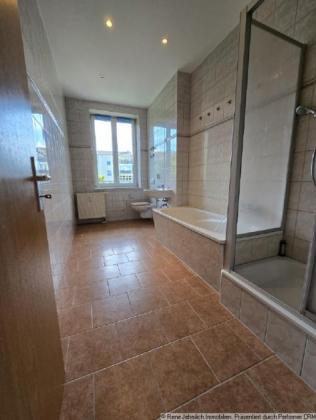 Das Tageslichtbad ist großzügig gestaltet und modern ausgestattet: Eine Badewanne, eine separate Dusche, Doppelwaschbecken sowie ein Waschmaschinenanschluss erfüllen alle Ansprüche an Komfort und Funktionalität.
