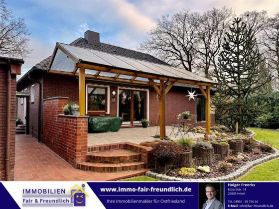 Dieser äußerst gepflegte Bungalow befindet sich in Hesel in zentrale Lage an einer Hauptstraße. Trotz der verkehrsgünstigen Anbindung herrscht im Inneren des Hauses eine bemerkenswerte Ruhe, die ein entspanntes und angenehmes Wohnen ermöglicht. Die durchdachte Bauweise, die geschützte Ausrichtung der Wohnräume sowie der gepflegte Garten schaffen eine ruhige Wohnatmosphäre, die man von außen so nicht erwartet.