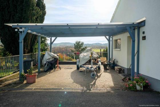 Ein großes Carport bietet Platz für Ihre Fahrzeuge und rundet das Angebot ab.