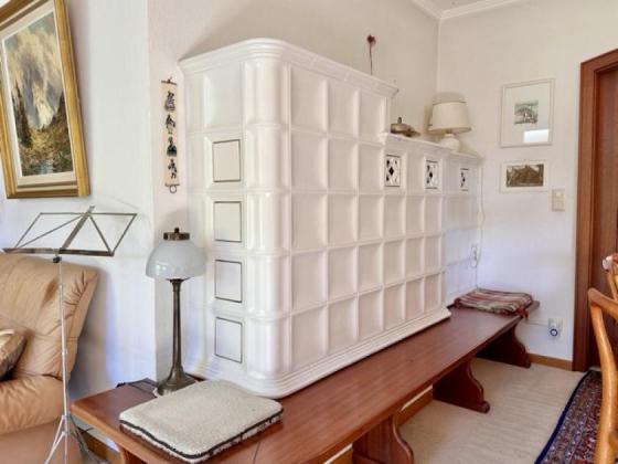 Die Ausstattung umfasst Außenjalousien im Erdgeschoss, Fliesen- und Teppichböden sowie einen Kachelofen und Kamin, welche für gemütliches Ambiente sorgen.
