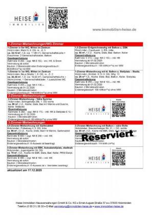 *** UPDATE *** 17.12.2025 *** Aktuelle Mietübersicht *** Heise Immobilien Holzminden (Wohnungen Holzminden)