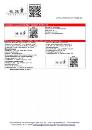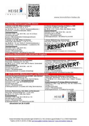 *** UPDATE *** 26.10.2025 *** Aktuelle Mietübersicht *** Heise Immobilien Holzminden (Wohnungen Holzminden)