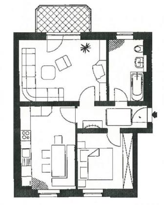 Die Wohnung mit ca. 57 m² Wohnfläche befindet sich im 2. OG und teilt sich wie folgt auf: