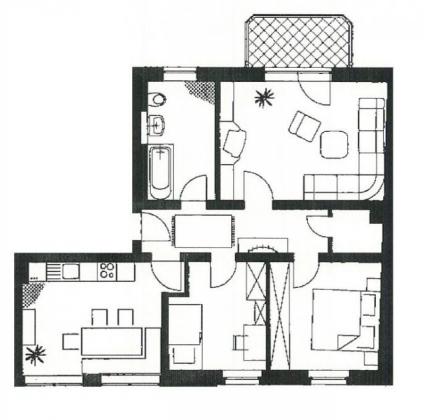 Die Wohnung mit ca. 69 m² Wohnfläche befindet sich im 2. OG und teilt sich wie folgt auf: