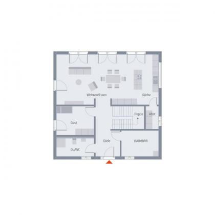 Als wahres Raumwunder entpuppt sich die Stadtvilla 21. Auf einer Wohnfläche von knapp 190 Quadratmetern finden hier Familien mit bis zu drei Kindern Platz - und haben sogar noch Gelegenheit, Schlafgästen einen eigenen Raum zur Verfügung zu stellen oder sich alternativ ein Büro oder einen Hobbyraum einzurichten. Durch die freundliche und helle Diele führt der Weg direkt in den Wohn-Ess-Kochbereich, der das perfekte Zentrum des Familienlebens ist. Komplettiert wird das Angebot im Erdgeschoss durch ein Gästezimmer, WC, Hauswirtschaftsraum sowie eine Abstellkammer. Die obere Etage ist so konzipiert, dass dort verschiedene Nutzungsmöglichkeiten denkbar sind: Neben dem Elternschlafzimmer und einem 15 Quadratmeter großen Bad mit separatem Toilettenbereich befinden sich dort drei weitere Zimmer. Hier finden drei Kinder Platz, es besteht aber auch die Option, dass einer der drei Räume als Spielzimmer fungiert.