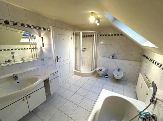 Diese geräumige DG -Wohnung, besticht durch Ihre hellen und großzügig geschnittenen Räume, das tolle Tageslichtbad mit Wanne, Dusche, WC und Bidet, sowie die voll ausgestattete Einbauküche, das separate Gäste WC und den großen Balkon.