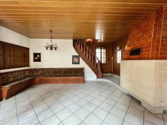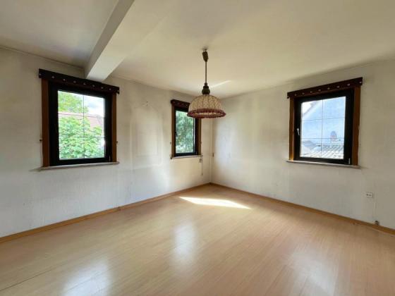 Das zweigeschossige Wohnhaus überzeugt mit großzügigem Eingangsbereich samt Kamin, Wohnraum und Küche. Im Obergeschoss befinden sich vier Zimmer und ein Bad, das Dachgeschoss bietet zusätzliche nutzbare Räume.