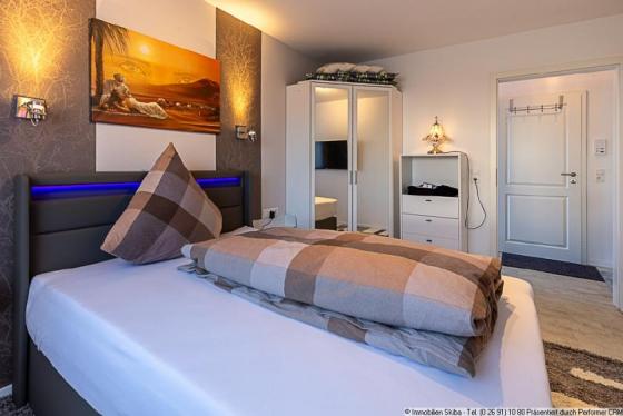 - Boxspringbett, Kleiderschrank und Kommode im Schlafzimmer