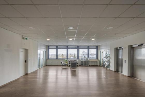 Zwei zentrale Personenaufzüge gewährleisten einen barrierefreien Zugang zu den Mieteinheiten sowie zu den Tiefgaragenebenen.