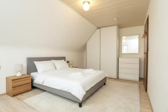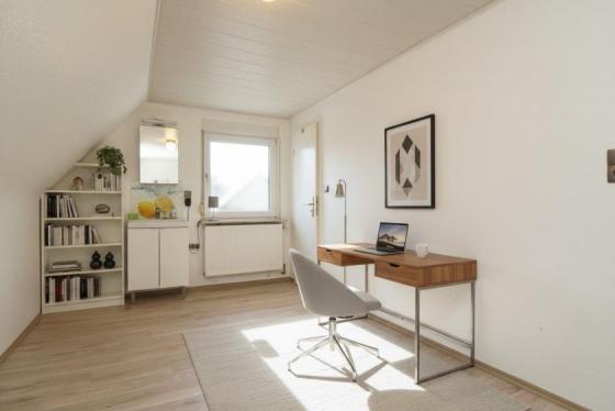 Im Obergeschoss finden sich zwei Schlafzimmer mit vielseitigen Nutzungsmöglichkeiten - als Hauptschlafzimmer, Kinderzimmer oder Home-Office. Ein separates WC ergänzt diese Etage.