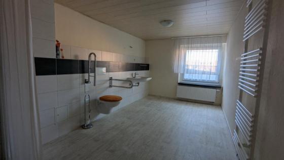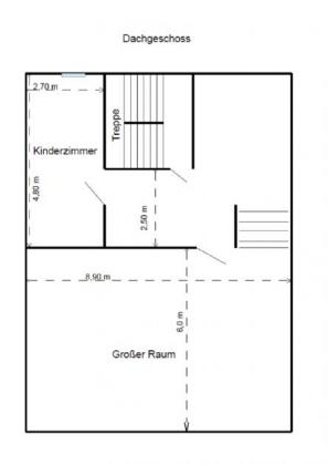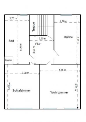 Im Obergeschoss liegt eine Wohnung mit zwei Zimmern, Küche und großem Bad. Auch hier besteht Renovierungsbedarf. Im Dachgeschoss wurde zusätzlich ein weiterer Raum als Kinderzimmer ausgebaut. Ein zusätzlicher Dachausbau wäre grundsätzlich möglich.