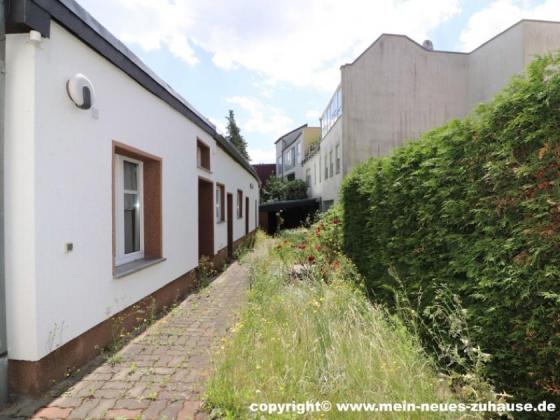 Auf dem Hof befinden sich das Nebengebäude und der Carport. Das Nebengebäude ist am Wohn- und Geschäftshaus angebaut. 2 Räume des Anbaues wurden für das Ladengeschäft ausgebaut. Die anderen Räume werden zu Abstellzwecken genutzt.