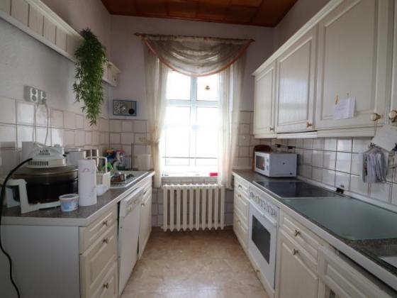 Das Wohn- und Geschäftshaus wurde ca. 1885 in massiver Bauweis mit Teilkeller errichtet. Im Erdgeschoss befinden sich ein Friseursalon und ein Ladengeschäft, im Ober- und Dachgeschoss eine Wohnung. Der Friseursalon hat mit 3 Frisierräumen und einem Büro eine Größe von ca. 77 m², das Ladengeschäft hat mit einem Verkaufsraum eine Größe von ca. 24 m². die Wohnung hat mit 7 Zimmern, Küche, Bad, Abstellräumen und Fluren eine Größe von ca. 216 m².