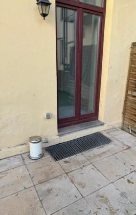 - Sonnige kleine Terrasse zum grünen Innenhof .