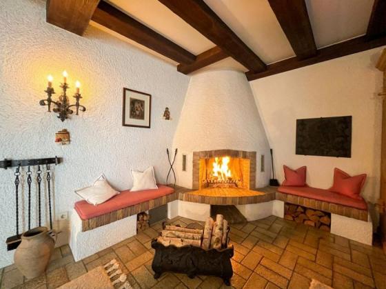 Ein besonderes Highlight ist der großzügige Raum mit Kamin und direktem Zugang zum Garten.
