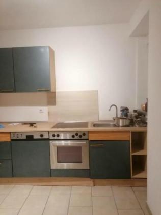 Beim Betreten der Wohnung im Obergeschoss gelangt man in den Flur, von dem aus sich der Wohnbereich erschließt. Angrenzend befindet sich die Küche, die mit einer Einbauküche ausgestattet ist.