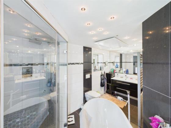 Ein besonderes Highlight ist der eigene Balkon mit Blick ins Grüne sowie der Gartenanteil zur privaten Nutzung – perfekt für entspannte Stunden im Freien. Zur Wohnung gehört zudem eine Einzelgarage und eine Sauna im Garten.